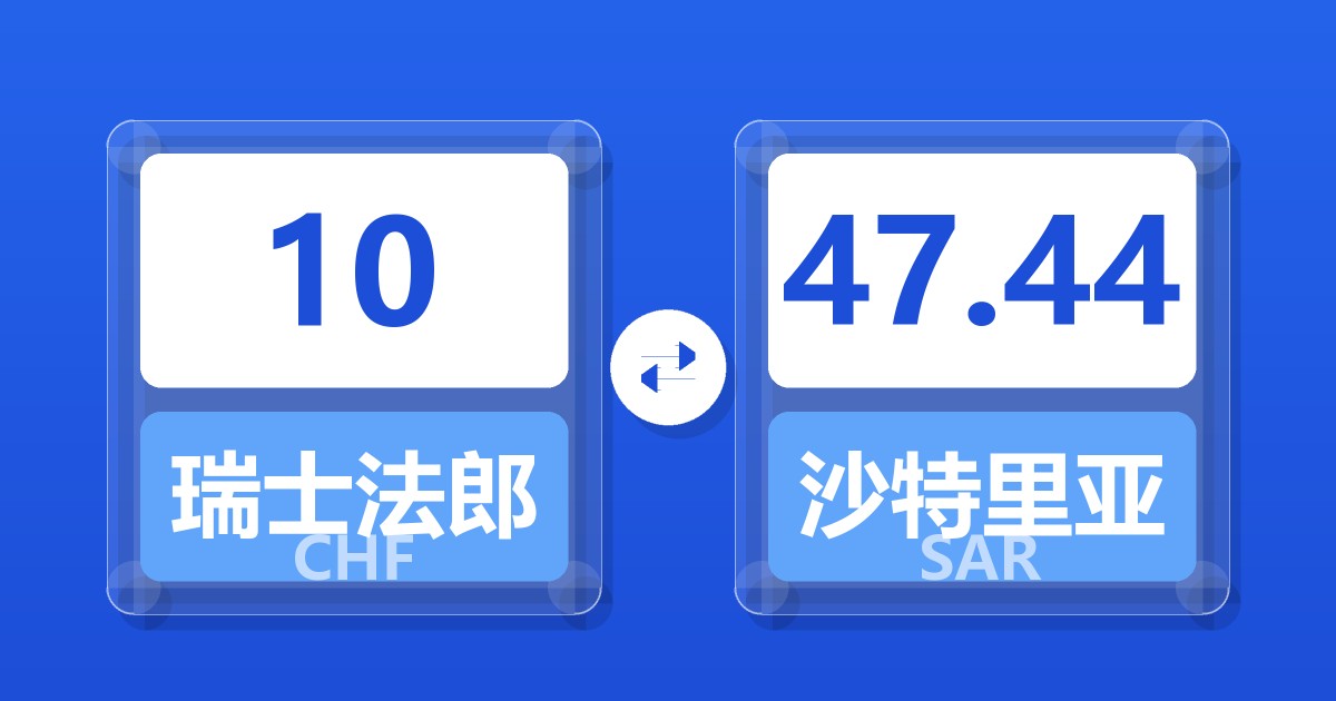 10 瑞士法郎 (CHF) = 47.44 沙特里亚尔 (SAR)