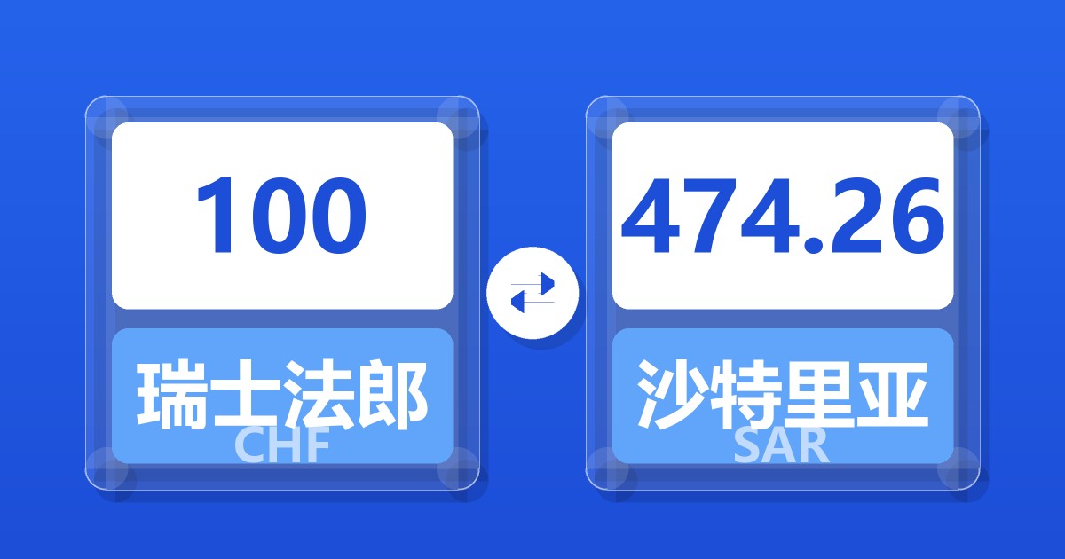 100 瑞士法郎 (CHF) = 474.38 沙特里亚尔 (SAR)