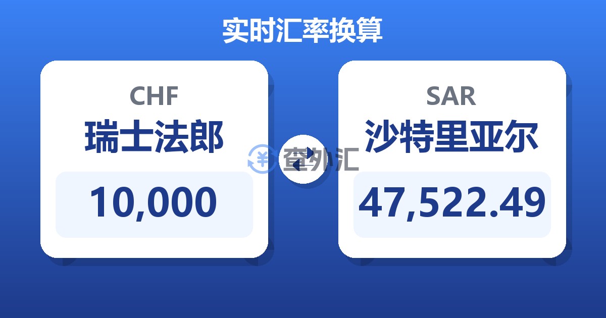 10,000 瑞士法郎 (CHF) = 47,426.33 沙特里亚尔 (SAR)