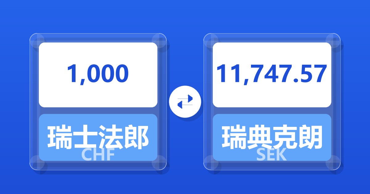 1,000 瑞士法郎 (CHF) = 11,768.88 瑞典克朗 (SEK)