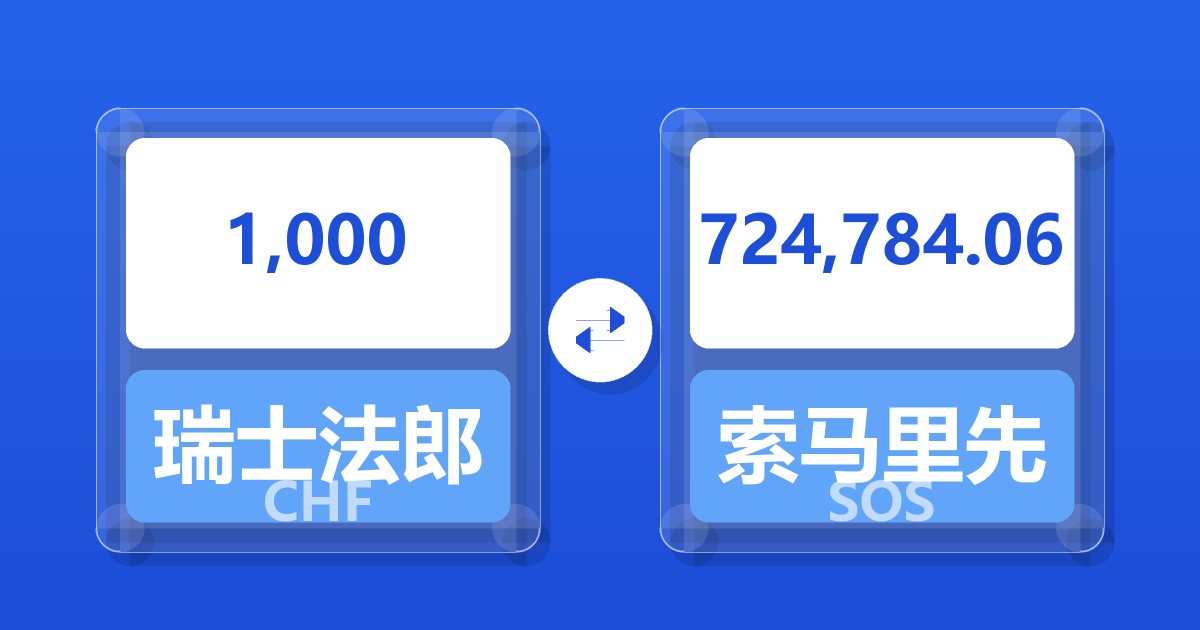 1,000 瑞士法郎 (CHF) = 724,784.06 索马里先令 (SOS)