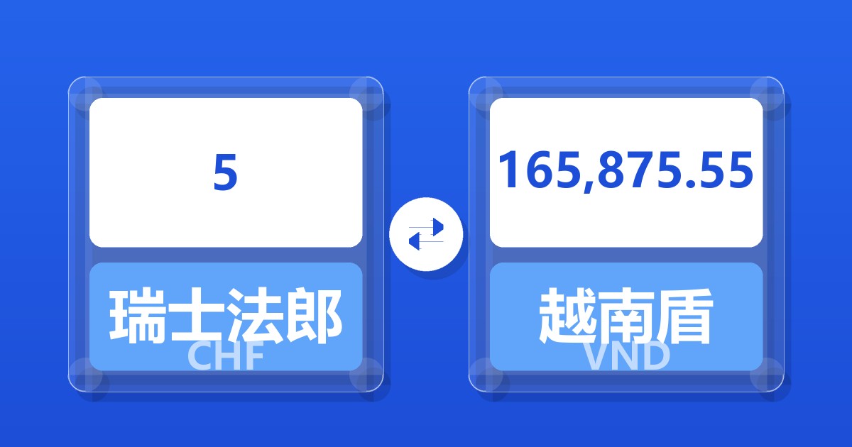 5 瑞士法郎 (CHF) = 166,118.02 越南盾 (VND)