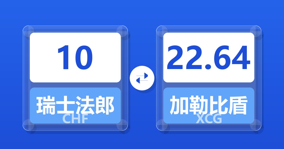 10 瑞士法郎 (CHF) = 22.64 加勒比盾 (XCG)