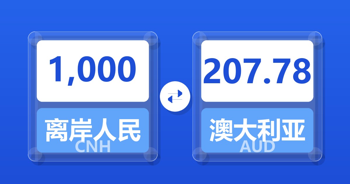 1,000 离岸人民币 (CNH) = 207.78 澳大利亚元 (AUD)