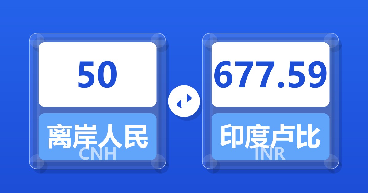 50 离岸人民币 (CNH) = 677.59 印度卢比 (INR)