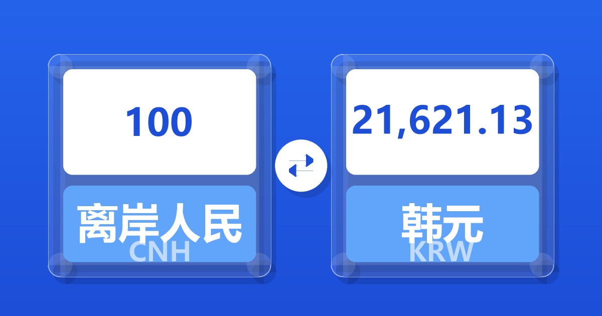 100 离岸人民币 (CNH) = 21,636.75 韩元 (KRW)