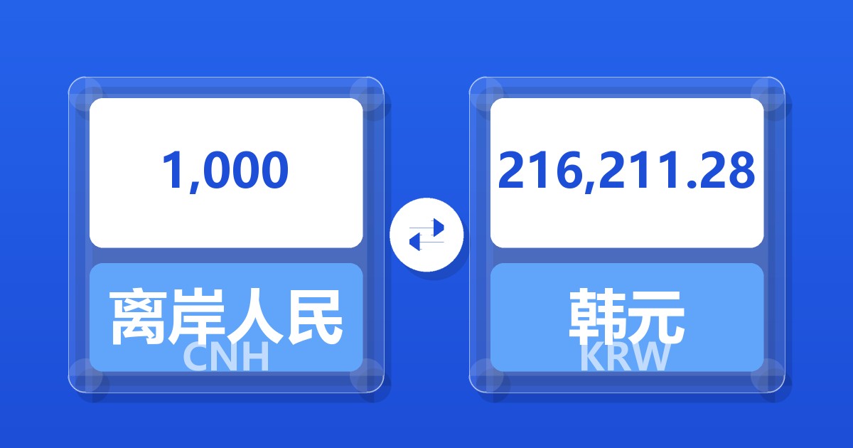 1,000 离岸人民币 (CNH) = 216,367.48 韩元 (KRW)