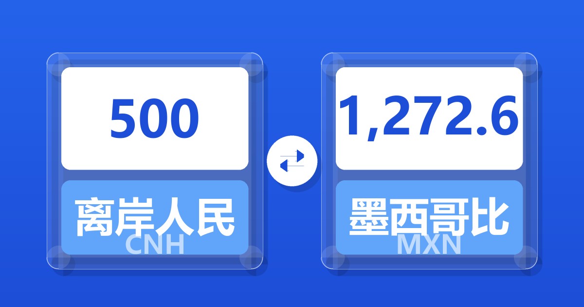 500 离岸人民币 (CNH) = 1,276.15 墨西哥比索 (MXN)
