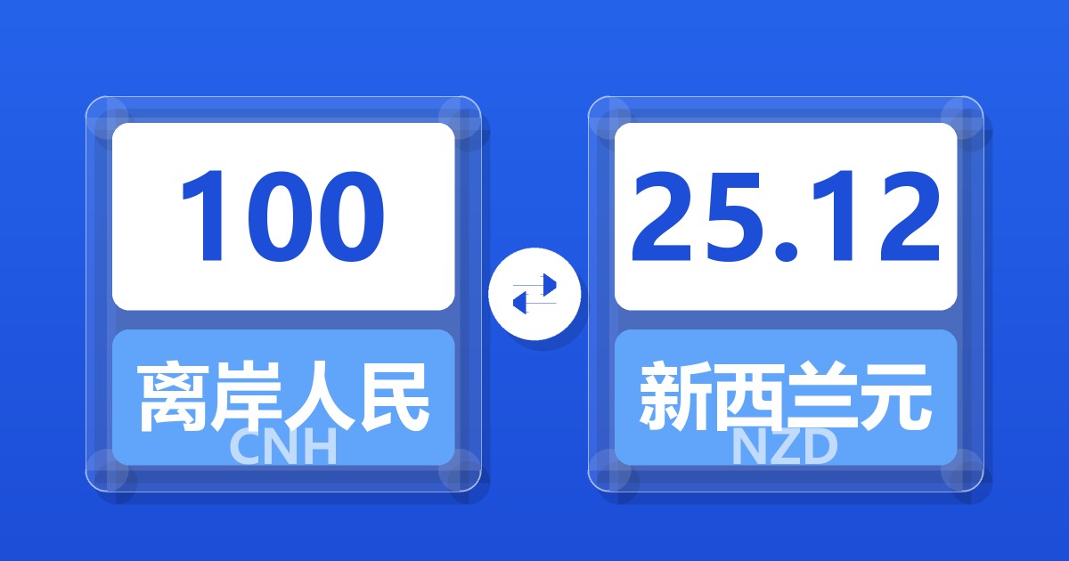 100 离岸人民币 (CNH) = 25.12 新西兰元 (NZD)