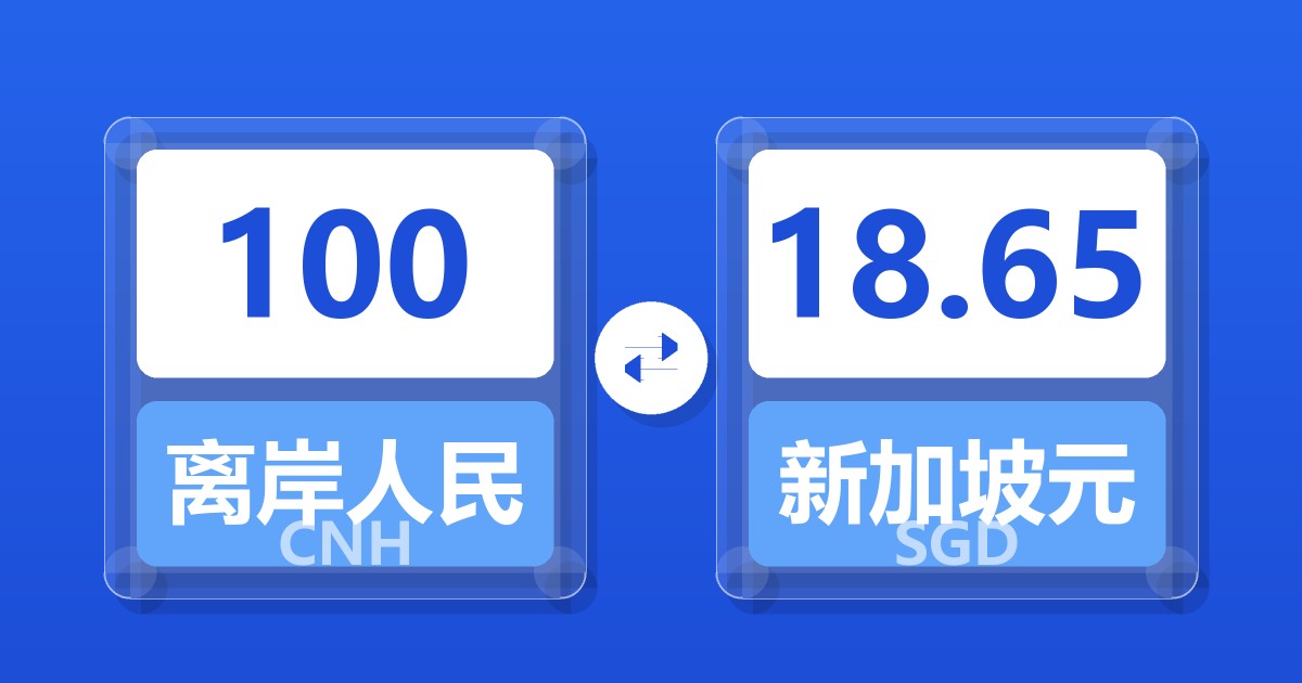 100 离岸人民币 (CNH) = 18.65 新加坡元 (SGD)