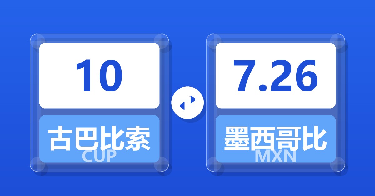 10 古巴比索 (CUP) = 7.26 墨西哥比索 (MXN)