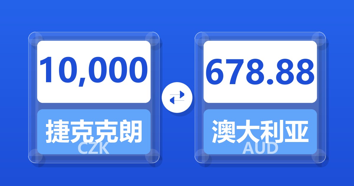 10,000 捷克克朗 (CZK) = 679.31 澳大利亚元 (AUD)