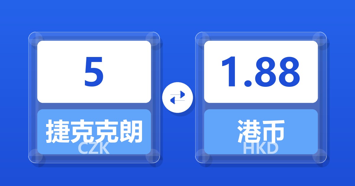5 捷克克朗 (CZK) = 1.87 港币 (HKD)