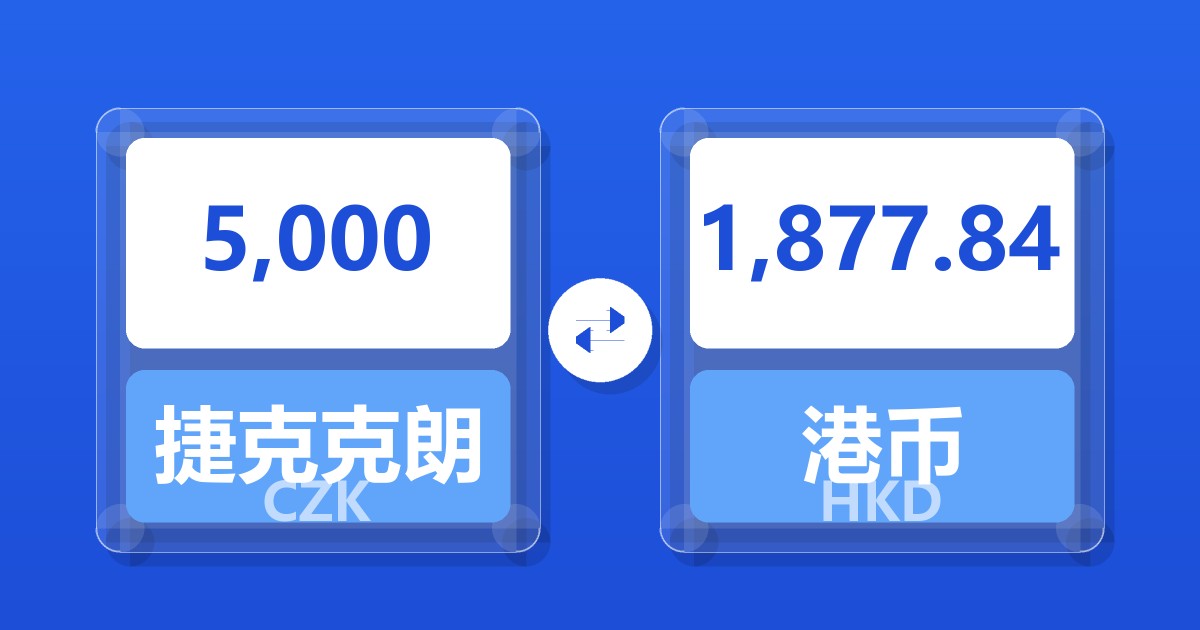 5,000 捷克克朗 (CZK) = 1,874.24 港币 (HKD)