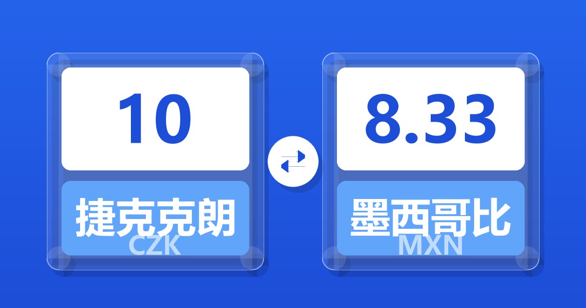 10 捷克克朗 (CZK) = 8.34 墨西哥比索 (MXN)