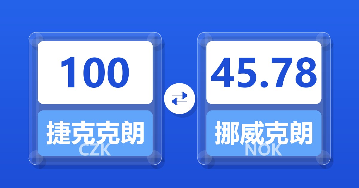 100 捷克克朗 (CZK) = 45.78 挪威克朗 (NOK)