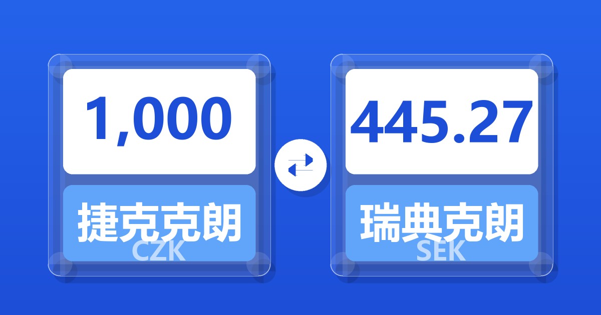 1,000 捷克克朗 (CZK) = 445.25 瑞典克朗 (SEK)