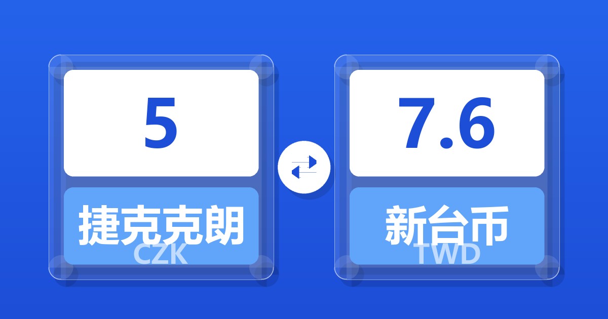 5 捷克克朗 (CZK) = 7.60 新台币 (TWD)
