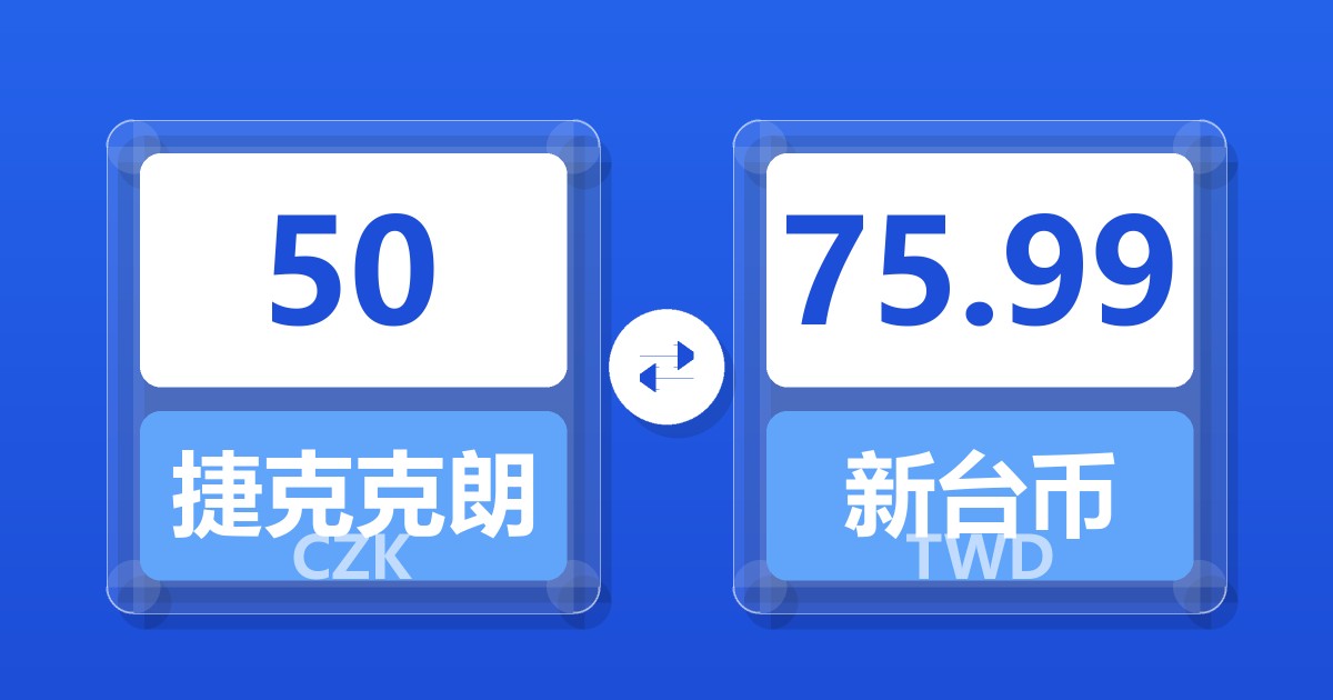 50 捷克克朗 (CZK) = 75.99 新台币 (TWD)