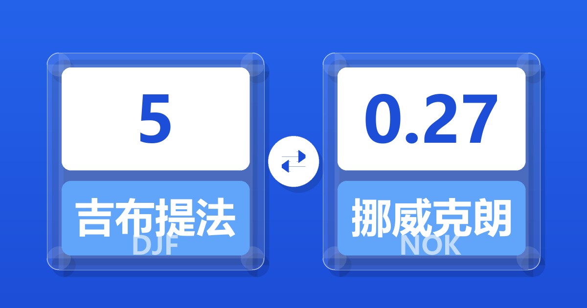 5 吉布提法郎 (DJF) = 0.27 挪威克朗 (NOK)