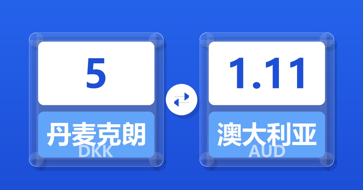 5 丹麦克朗 (DKK) = 1.11 澳大利亚元 (AUD)