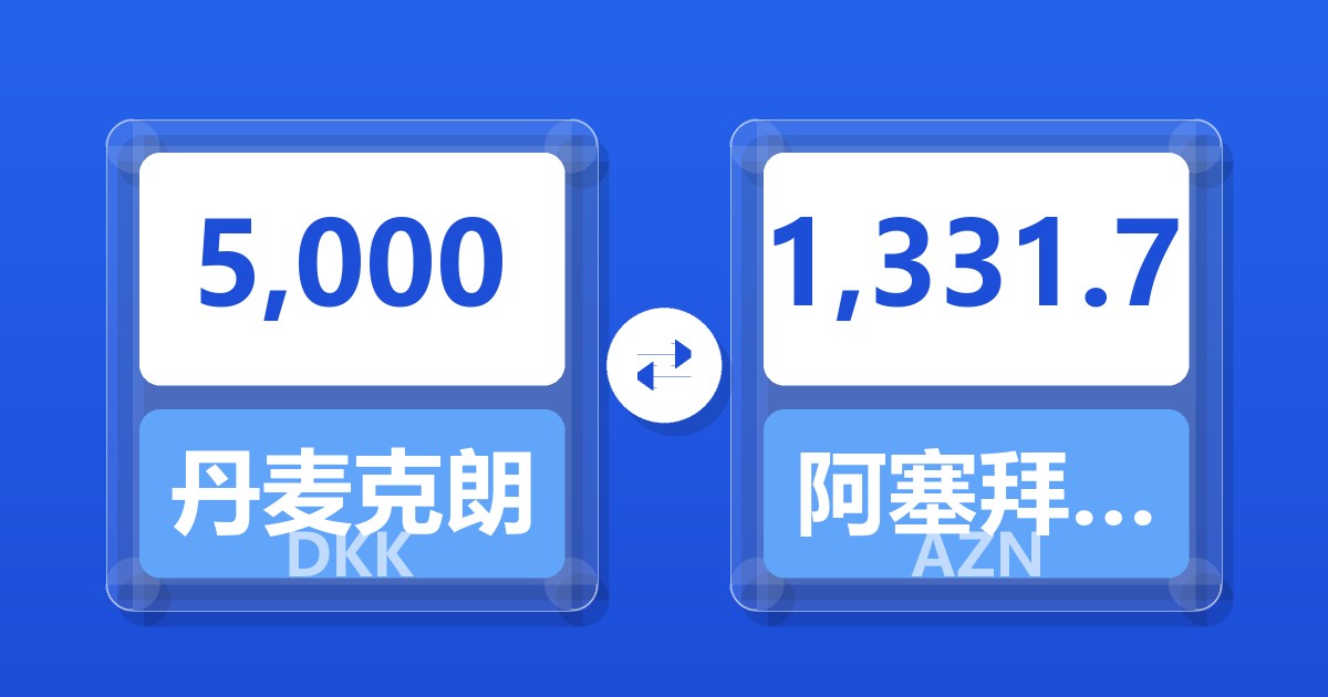 5,000 丹麦克朗 (DKK) = 1,331.25 阿塞拜疆马纳特 (AZN)