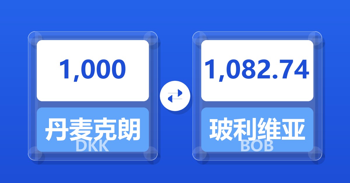 1,000 丹麦克朗 (DKK) = 1,084.23 玻利维亚诺 (BOB)