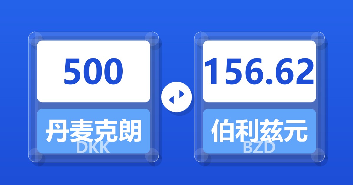 500 丹麦克朗 (DKK) = 156.55 伯利兹元 (BZD)