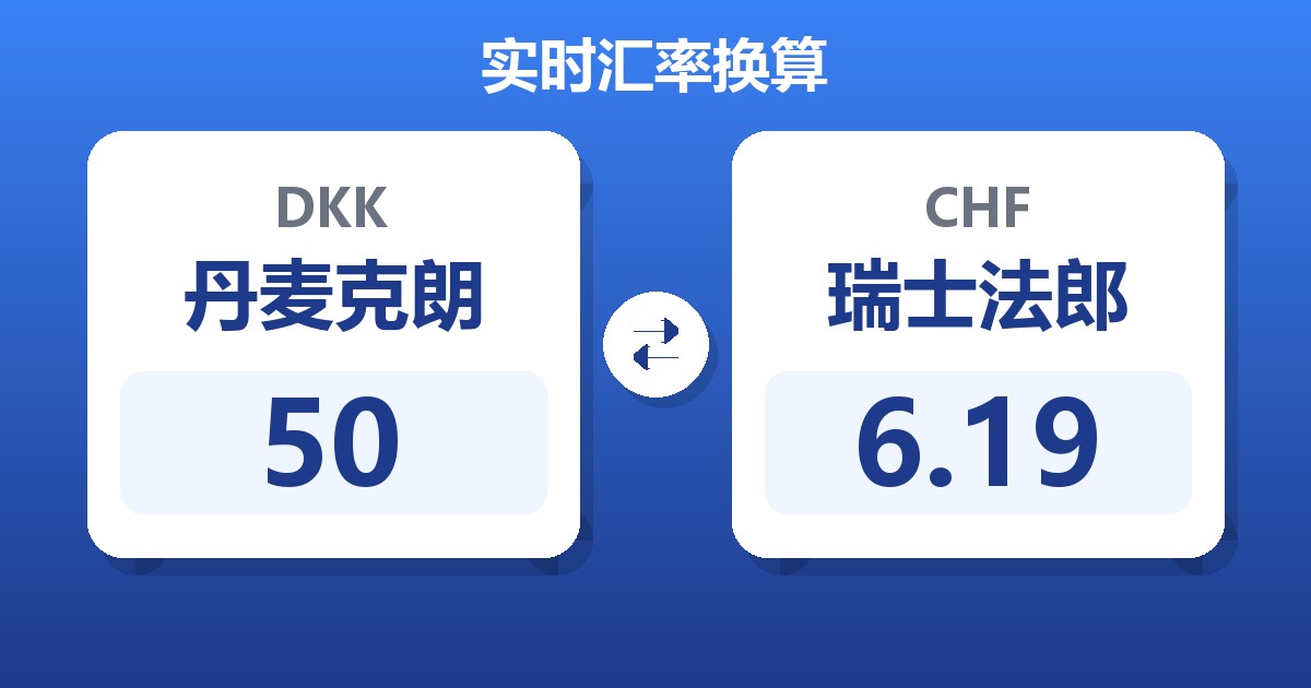 50 丹麦克朗 (DKK) = 6.19 瑞士法郎 (CHF)