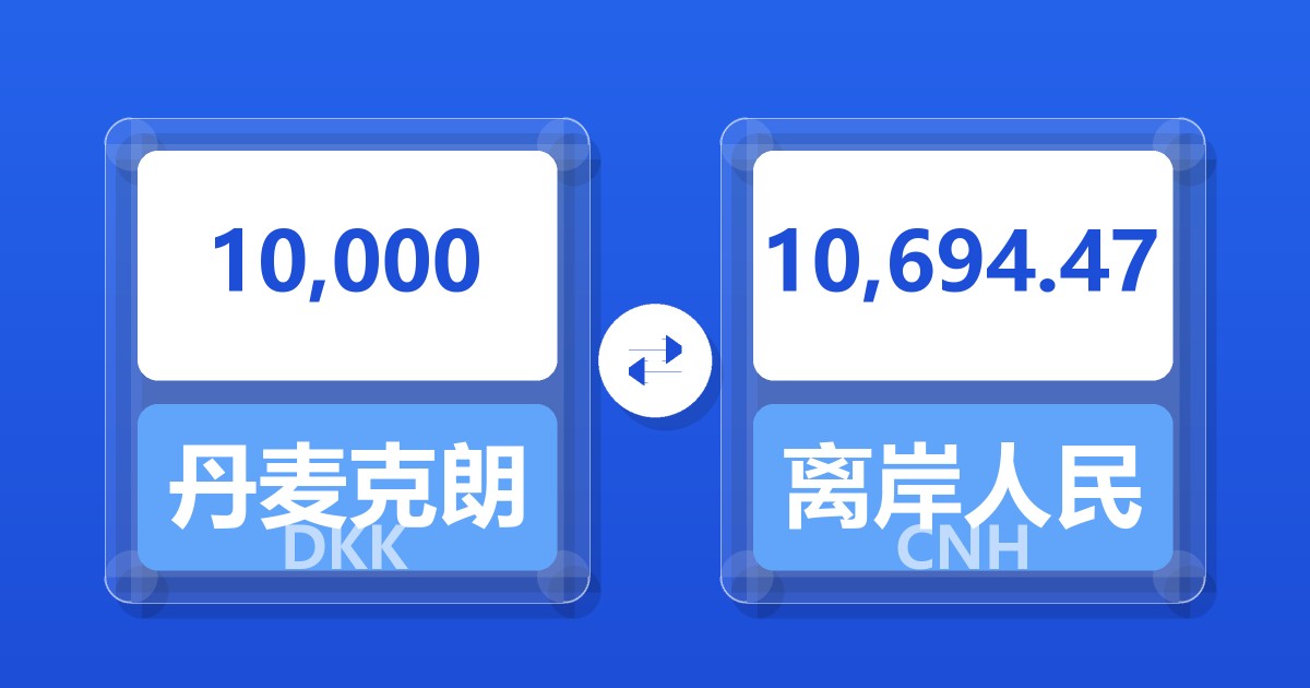 10,000 丹麦克朗 (DKK) = 10,694.47 离岸人民币 (CNH)