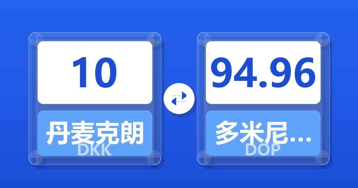 10 丹麦克朗 (DKK) = 94.70 多米尼加比索 (DOP)