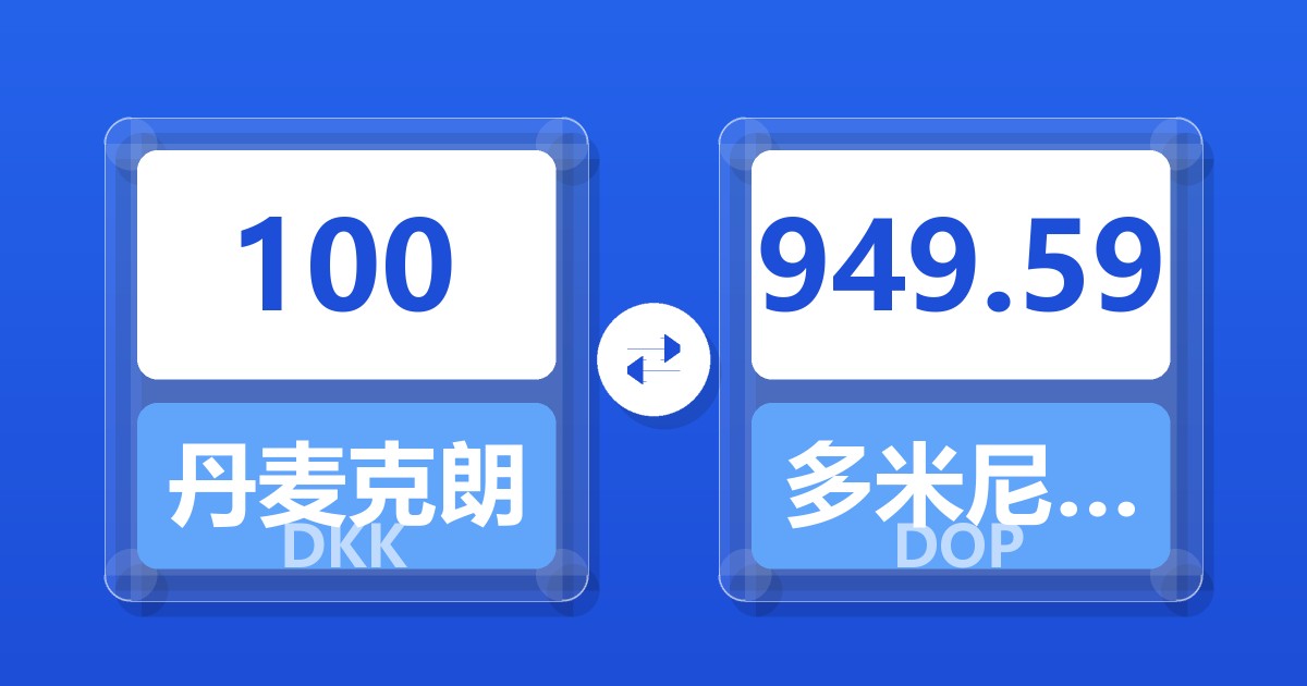 100 丹麦克朗 (DKK) = 947.04 多米尼加比索 (DOP)