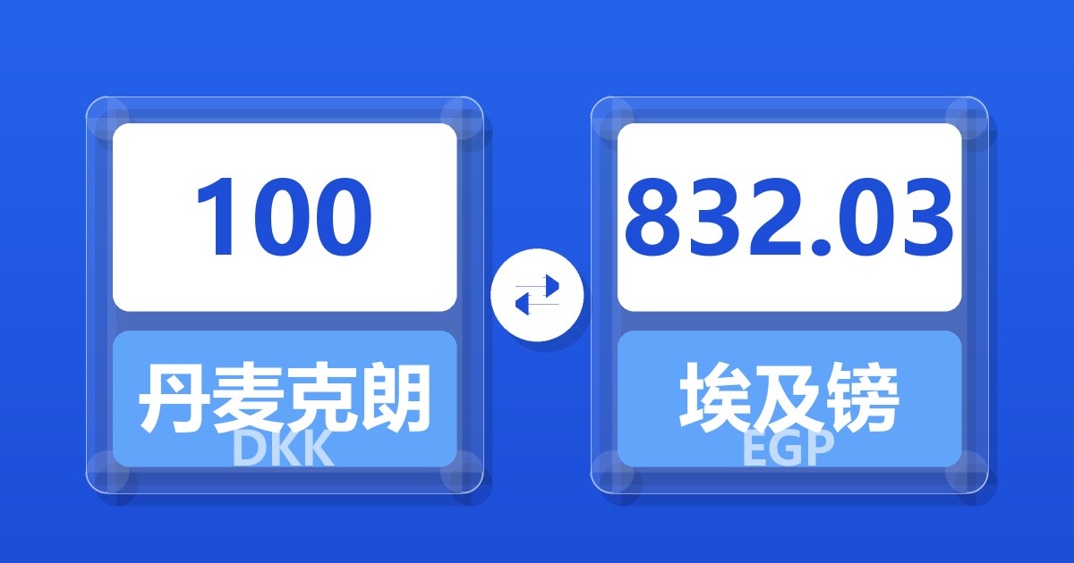 100 丹麦克朗 (DKK) = 834.75 埃及镑 (EGP)