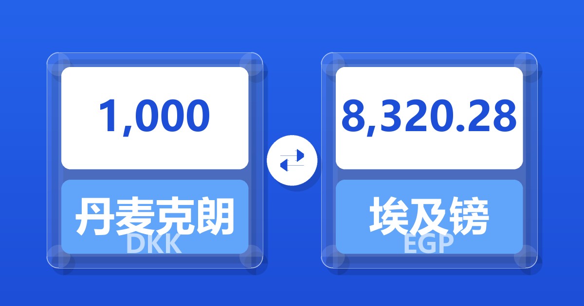 1,000 丹麦克朗 (DKK) = 8,347.47 埃及镑 (EGP)