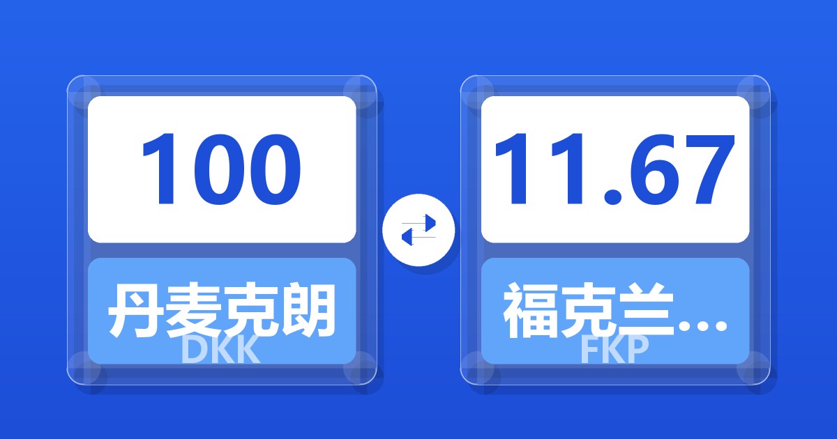 100 丹麦克朗 (DKK) = 11.67 福克兰群岛镑 (FKP)
