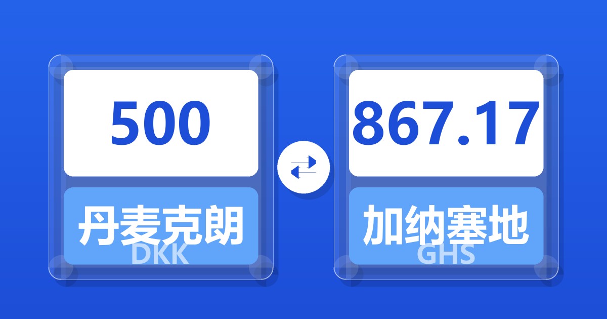 500 丹麦克朗 (DKK) = 867.17 加纳塞地 (GHS)
