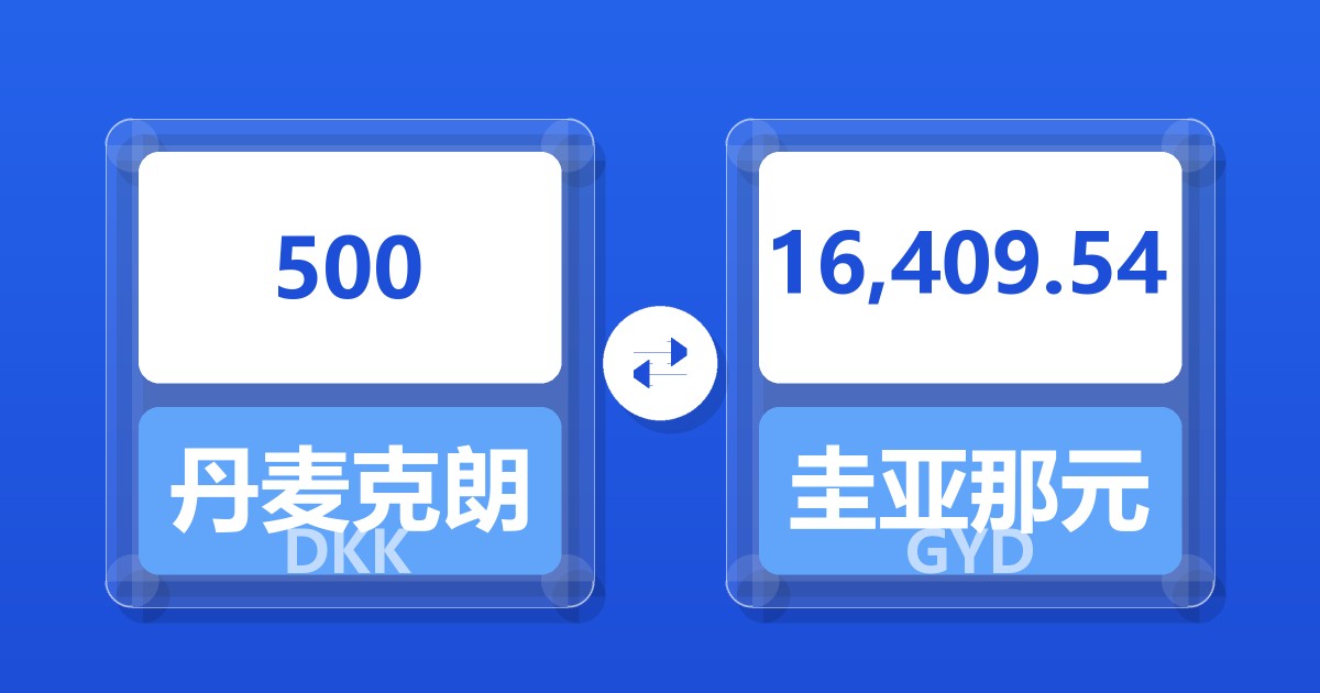 500 丹麦克朗 (DKK) = 16,414.90 圭亚那元 (GYD)