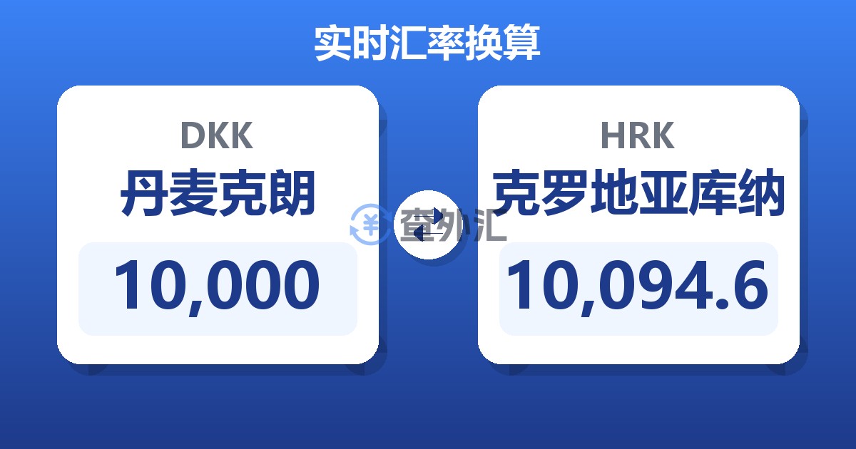 10,000 丹麦克朗 (DKK) = 10,101.29 克罗地亚库纳 (HRK)