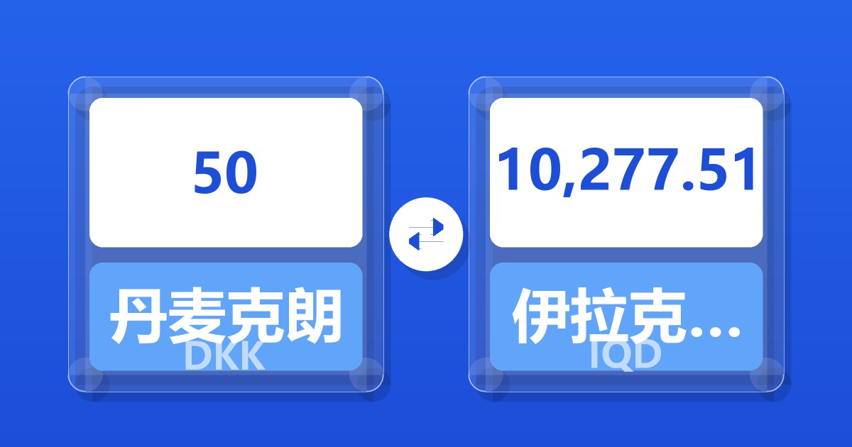 50 丹麦克朗 (DKK) = 10,277.51 伊拉克第纳尔 (IQD)