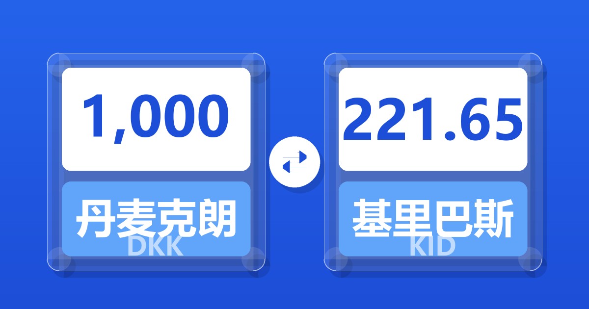 1,000 丹麦克朗 (DKK) = 222.16 基里巴斯元 (KID)