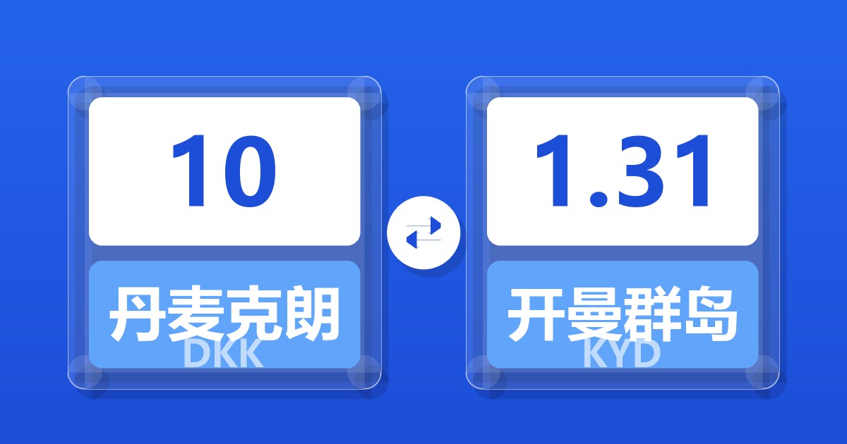 10 丹麦克朗 (DKK) = 1.30 开曼群岛元 (KYD)