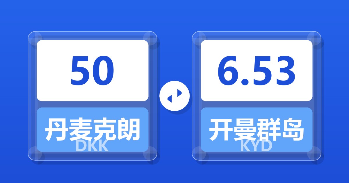 50 丹麦克朗 (DKK) = 6.52 开曼群岛元 (KYD)