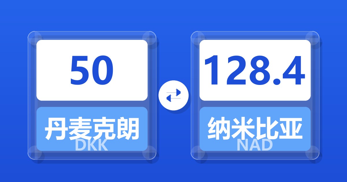 50 丹麦克朗 (DKK) = 128.36 纳米比亚元 (NAD)