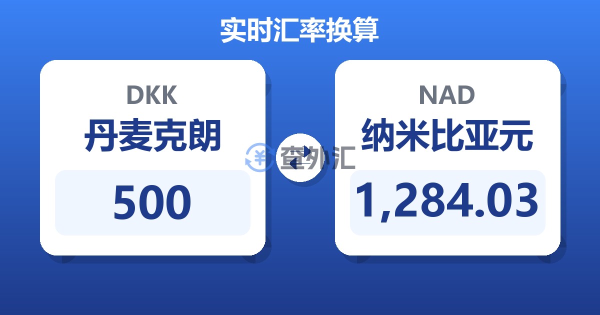 500 丹麦克朗 (DKK) = 1,283.56 纳米比亚元 (NAD)