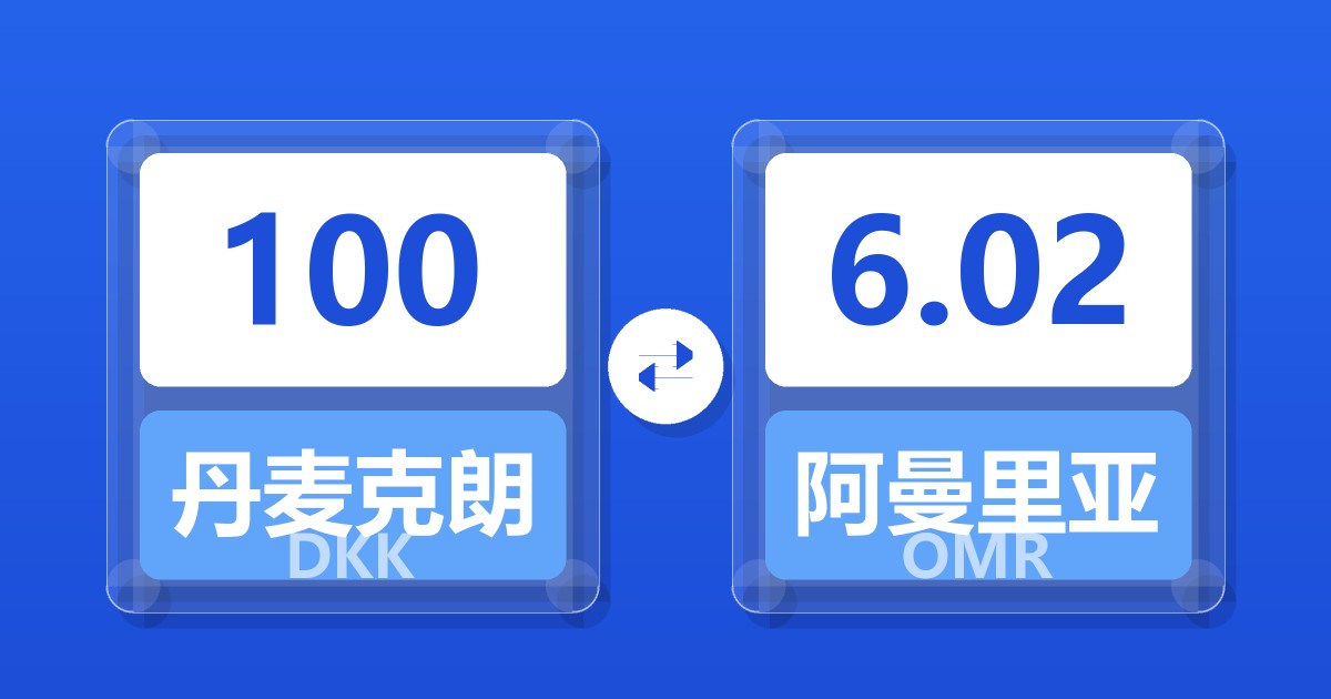 100 丹麦克朗 (DKK) = 6.02 阿曼里亚尔 (OMR)