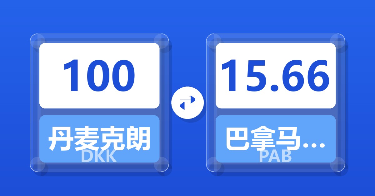 100 丹麦克朗 (DKK) = 15.66 巴拿马巴波亚 (PAB)