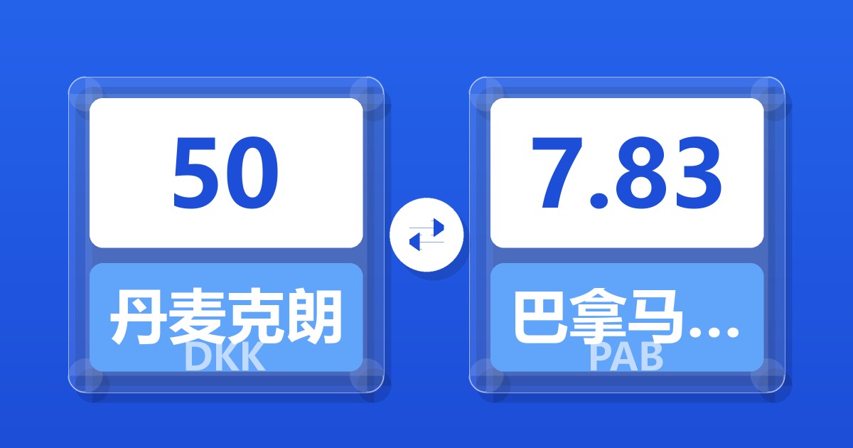50 丹麦克朗 (DKK) = 7.83 巴拿马巴波亚 (PAB)