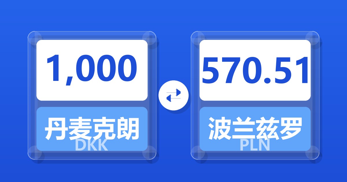 1,000 丹麦克朗 (DKK) = 570.51 波兰兹罗提 (PLN)