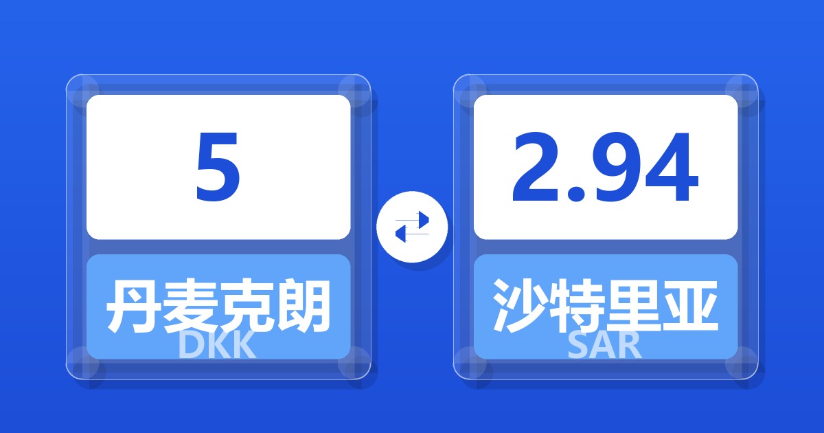 5 丹麦克朗 (DKK) = 2.94 沙特里亚尔 (SAR)