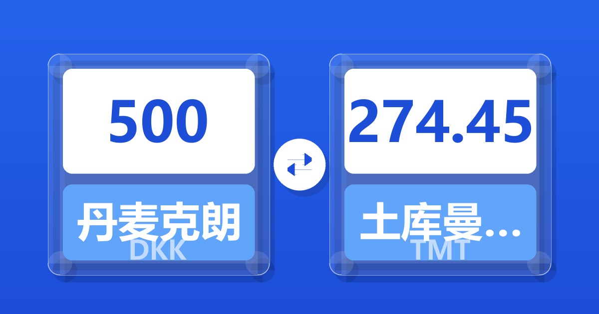 500 丹麦克朗 (DKK) = 274.45 土库曼斯坦马纳特 (TMT)